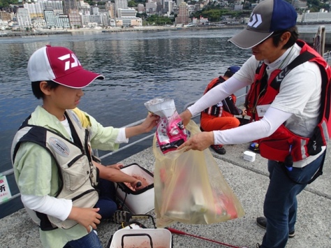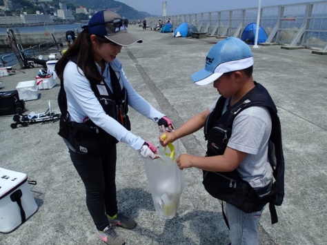 ウキフカセ釣り入門講習会では、釣り場の環境保全のために、 「釣り場にゴミは捨てない!」「他人の出したゴミでも、目に付いたものは勇気を持って拾う!」といった行動を推奨しております。