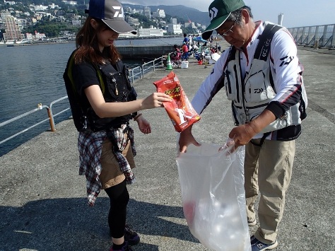 2015年9月13日に開催されたウキフカセ釣り入門講習会では、コマセ作りの時に出たゴミは、すべて回収して、施設指定のゴミ箱に捨てて帰りました。
