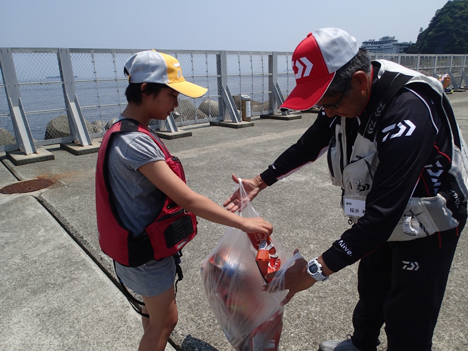 2016年5月21日に開催された第62回ウキフカセ釣り入門講習会では、コマセ作りの時に出たゴミは、すべて回収して、施設指定のゴミ箱に捨てて帰りました。