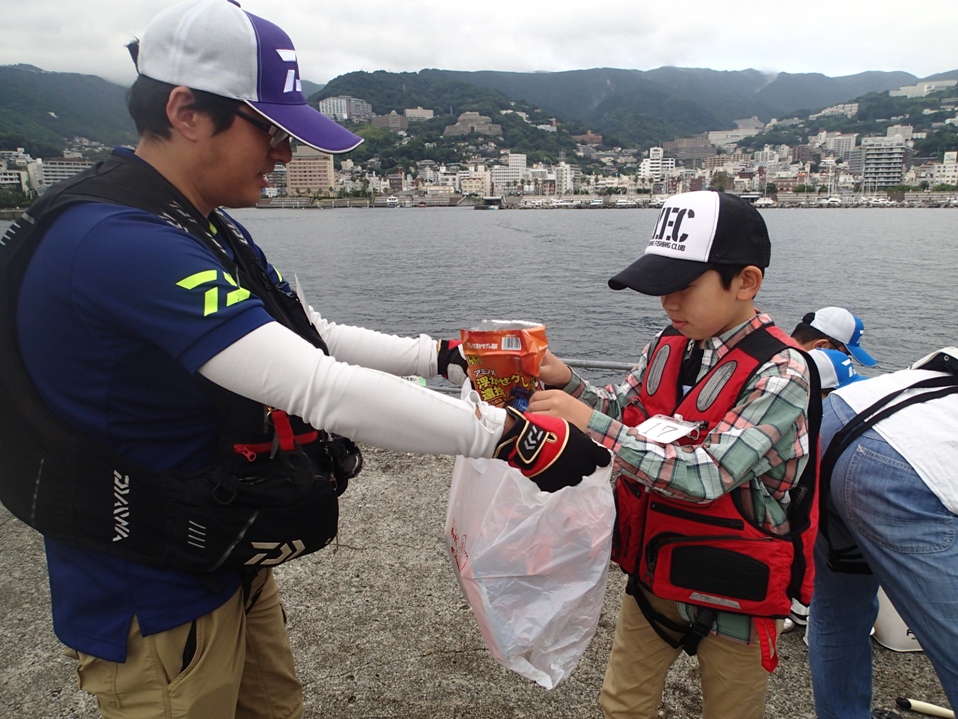 2016年7月23日の午前に開催された第65回ウキフカセ釣り入門講習会では、コマセ作りの時に出たゴミは、すべて回収して、施設指定のゴミ箱に捨てて帰りました。